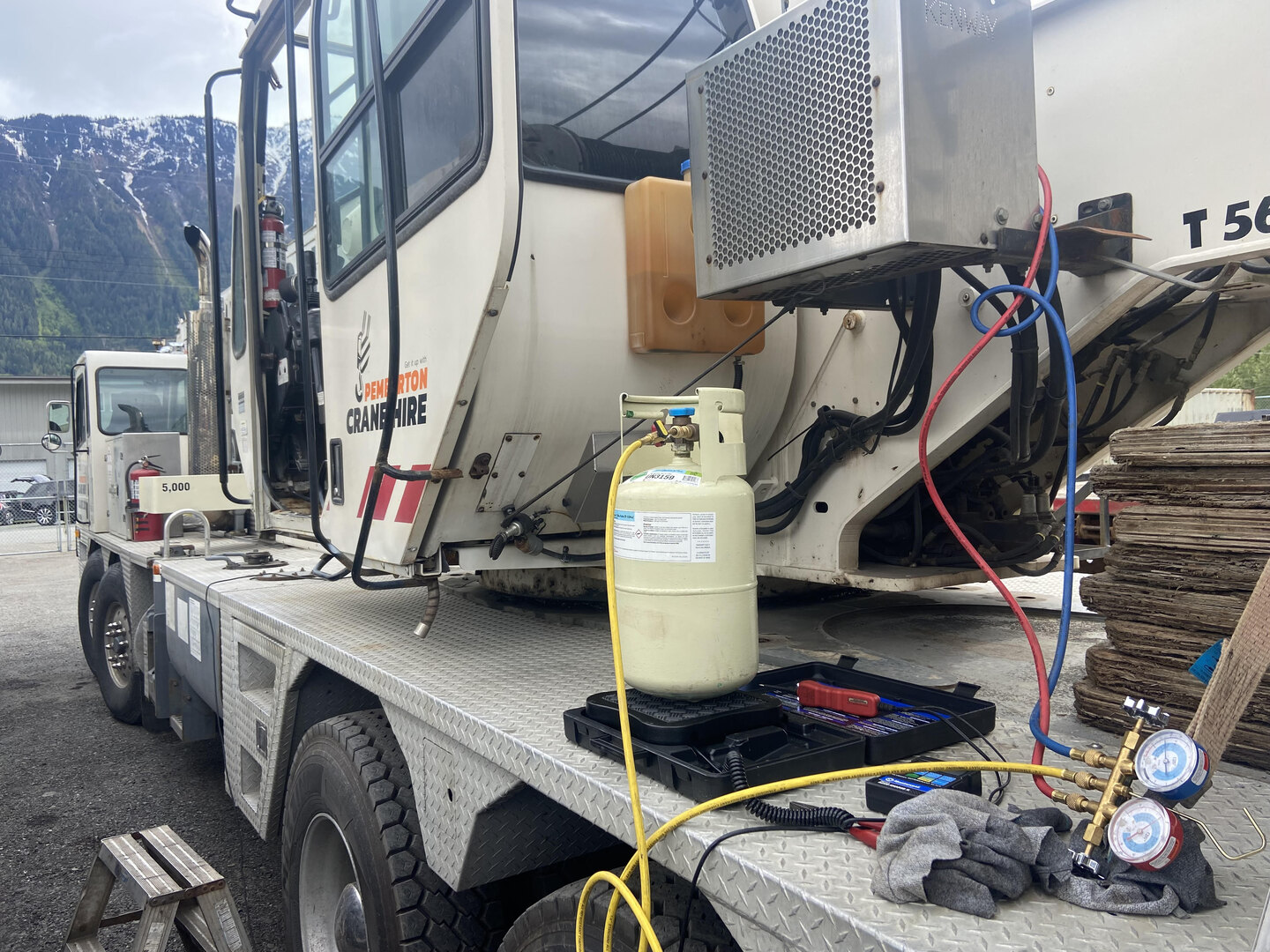 When the weather gets warm, so does the cab of your machine, dump truck, or car! We have the equipment to evacuate, recharge, and repair all of your R134A needs! You can bring your problem to us, or we can come to you!